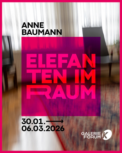 „Elefanten im Raum“ von Anne Baumann thematisiert unausgesprochene Spannungen unserer Gesellschaft – zwischen Erinnern, Verlust und Wandel. Vernissage: 30.01.2026, 19:30 Uhr im Forum K.