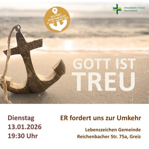 Das Motto der Allianzgebetswoche 2026 „Gott ist treu“ ist für unsere Zeit hochaktuell. Gottes Treue ist das unerschütterliche Fundament, auf dem unser Glaube steht. Wir können ihm unser Leben anvertrauen und darauf bauen, dass er hält, was er verspricht.